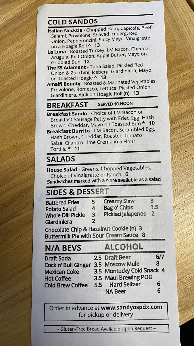 Welcome to Sandy-O's, a hidden gem on NE Sandy Blvd in Portland, where culinary creativity meets comfort food bliss. This eatery specializes in a menu that highlights hearty sandwiches and delectable sides. Here, you can savor the Italian Necktie, a flavorful hoagie stacked with an irresistible mix of cured meats and zesty sauces, or the Holy Smokes Smash Burger, crowned with rich pimento cheese and brisket for an unforgettable bite.